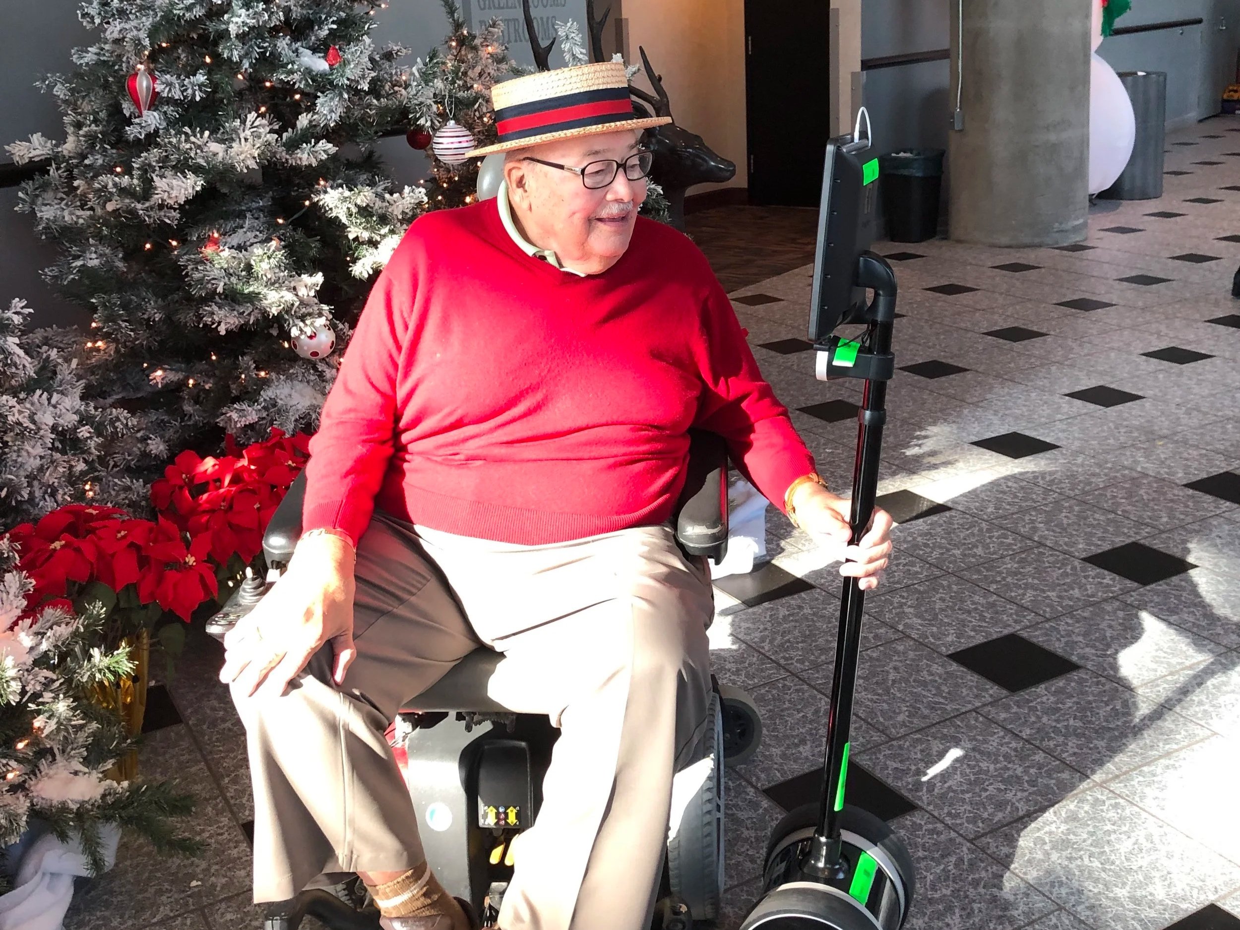 Happy Joe talks with a someone using the Double 3 Robot