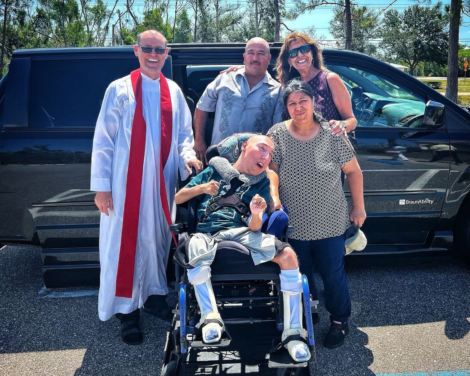 One of this year’s grant recipients is Isidro, 26 from Bokeelia, Florida. He was born quadriplegic and is unable to walk. Happy Joe’s Kids Foundation in partnership with Our Lady of the Miraculous Medal Catholic Church (Pine Island, Florida) provided the funds to have a custom mobility van purchased for Isidro and his family. He and his family are now able to leave the house together and attend their church on Sundays.